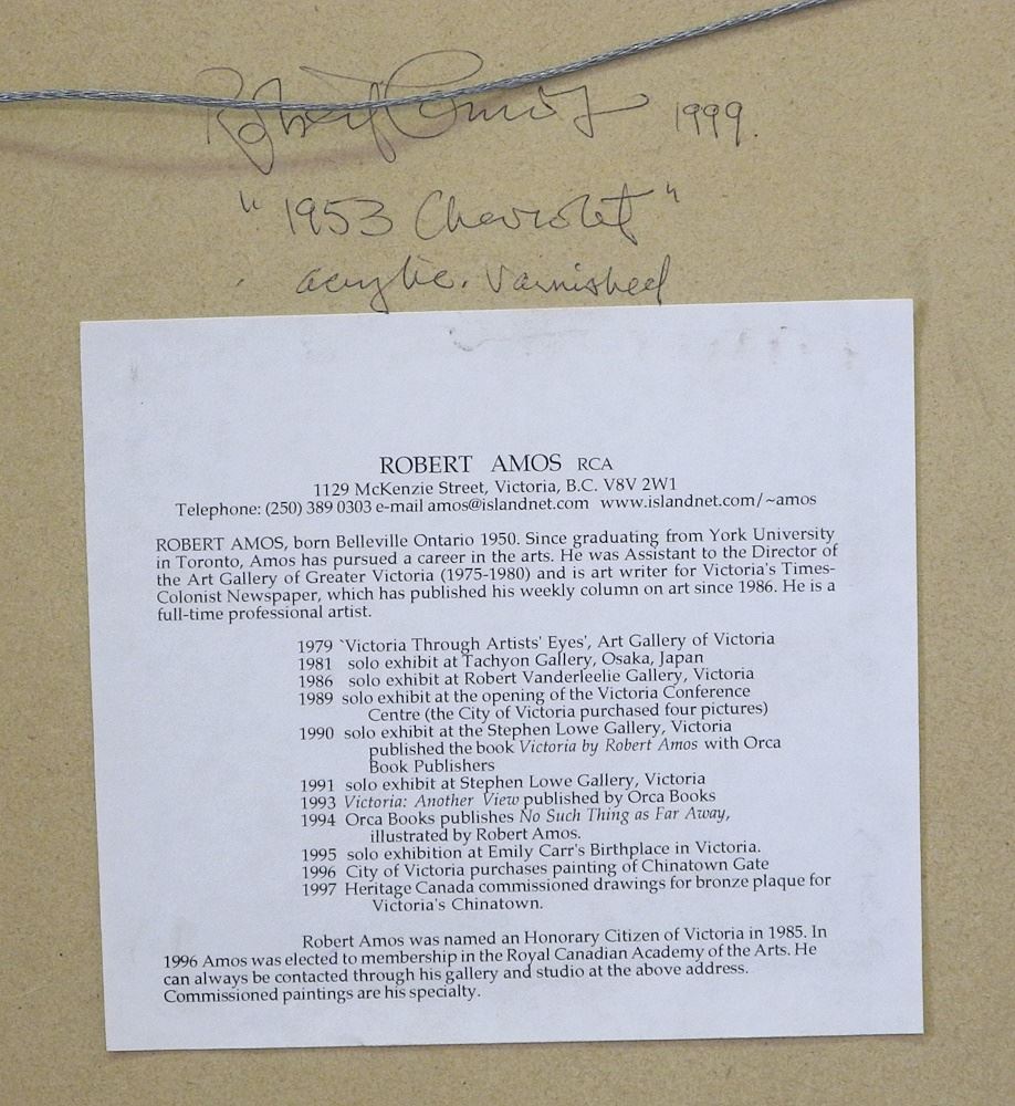 Varnished Acrylic on Board signed (Robert) Amos, 13 3/4" x 17 3/4", "1953 Chevrolet".