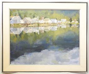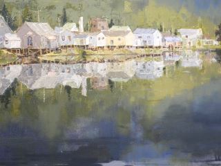 Oil on Canvas signed Alan Tasker Brown'88, 24" x 30", "Coastal Fishing Village".