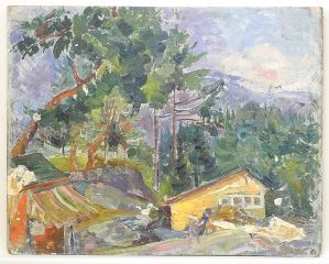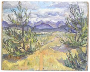 LOT 69 Double Sided Oil on Panel signed Irene Hoffer Reid 1936, 11 7/8" x 15", "Trees" & "Cabin". Estimate: $150 - $250 Sold For: $275 Auction Date: Tuesday, July 23 2024 at 4:00 PM