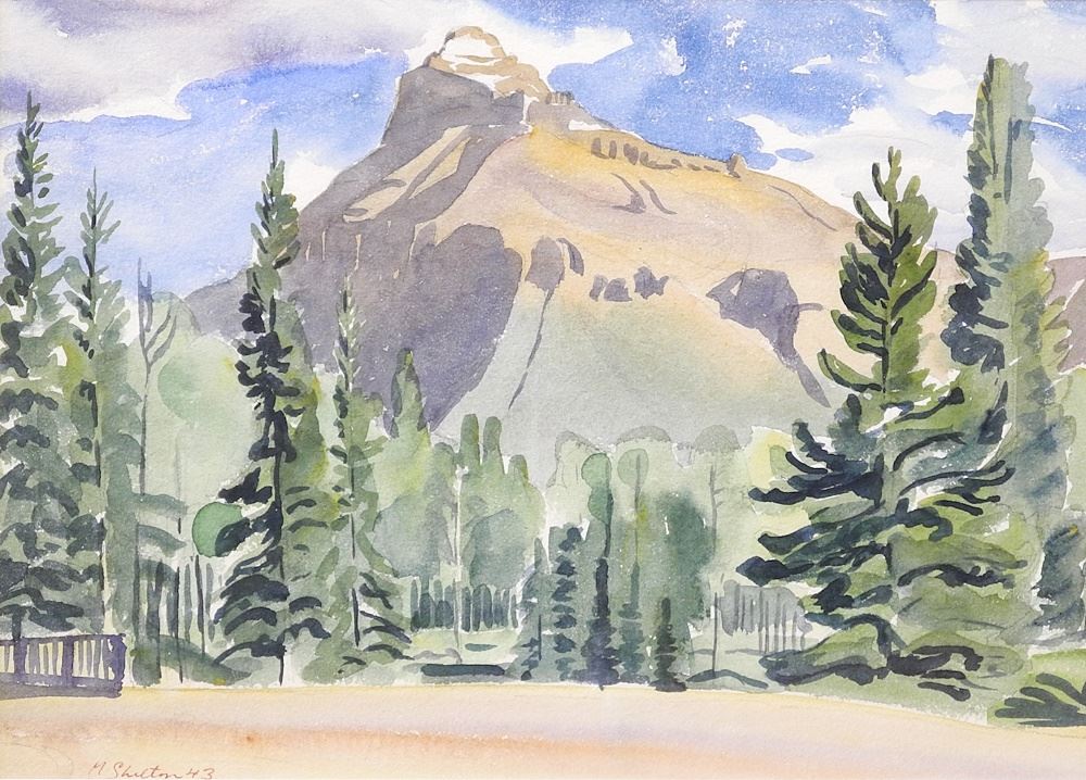 Watercolour signed (Margaret) Shelton 43, 10" x 14", "Rocky Mountain Vista".