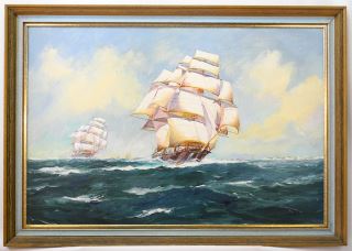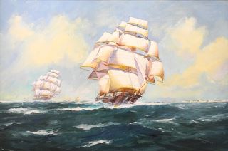 LOT 42 Oil on Board signed J. (Jack) W. Hardcastle 1971, 24" x 36", "The Great Tea Race of 1866". Estimate: $250 - $400 Sold For: $325 Auction Date: Tuesday, July 23 2024 at 4:00 PM