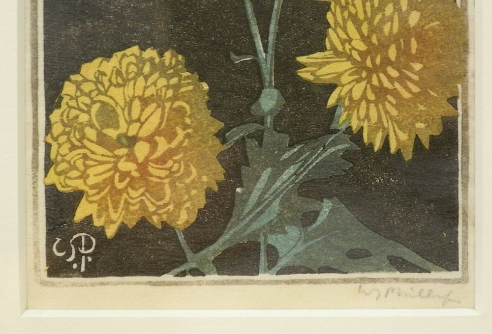 Colour Woodblock Print Monogrammed & Signed W. J. (Walter Joseph) Phillips, 4" x 3 3/8", "Po