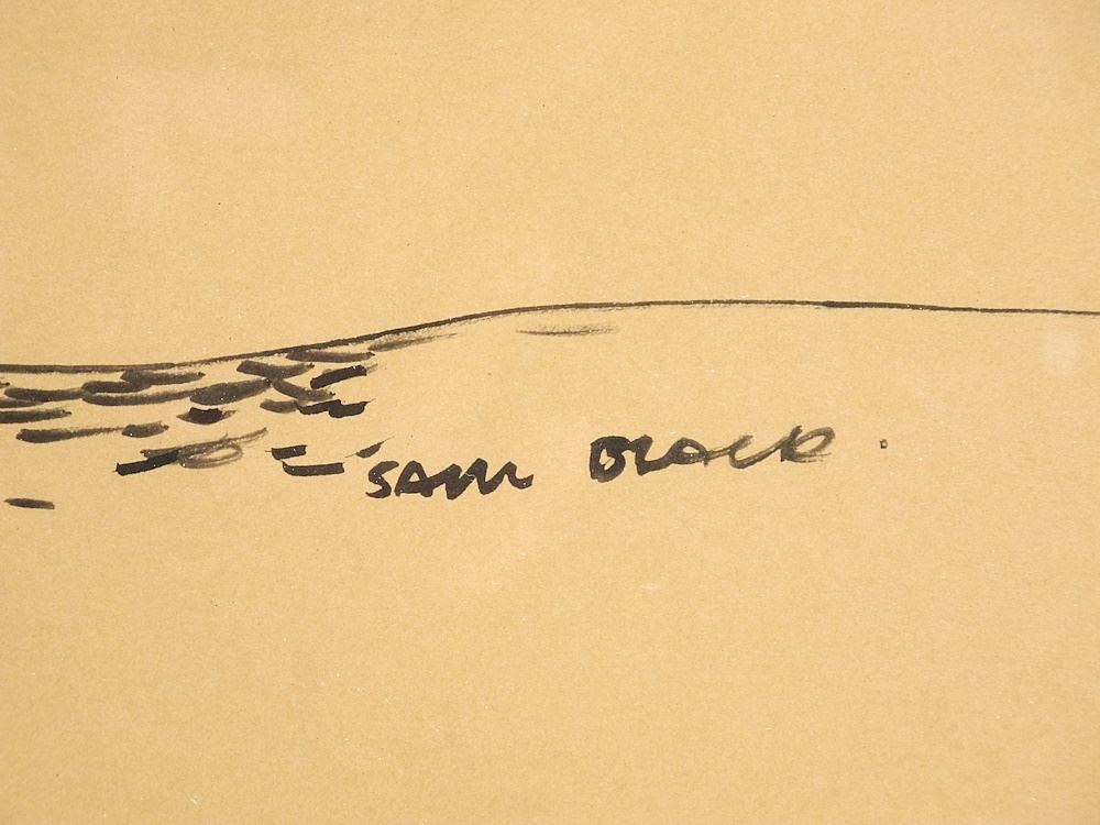 Ink Drawing signed Sam Black, 20" x 31", "On the Fraser River".