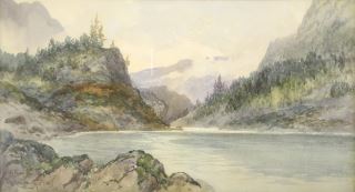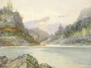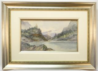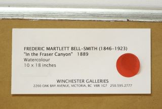 LOT 87 Watercolour signed F.M. (Frederick Martlett) Bell Smith 1889, 10" x 18" "In the Fraser Canyon". Estimate: $500 - $750 Sold For: $950 Auction Date: Tuesday, July 23 2024 at 4:00 PM