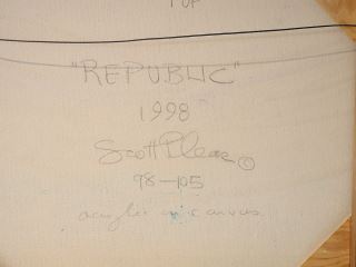 LOT 20 Acrylic on Canvas signed Verso Scott Plear, 21 3/4" x 75 1/2", "Republic" Estimate: $220 - $260 Sold For: $300 Auction Date: Tuesday, July 23 2024 at 4:00 PM