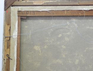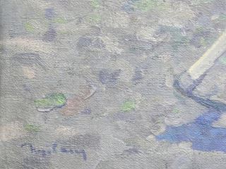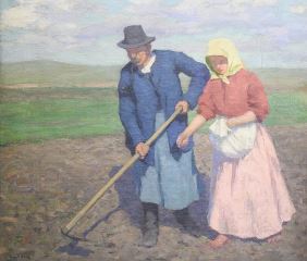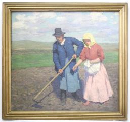 LOT 128 Oil on Canvas signed Indistinctly, 23 1/2" x 25 1/2", "Couple Sowing". - Estimate: $200 - $300 Auction Date: Tuesday, July 23 2024 at 4:00 PM