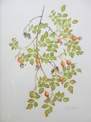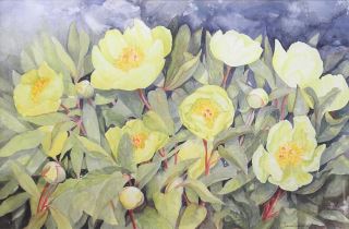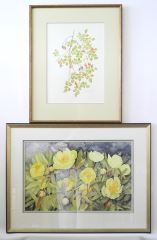 3 Watercolour: Wendy Gibbs "Rose Hips" & Joanna Hadfield "Peonies", 14 7/8" x 10 3/8" & 12 3/4