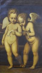 LOT 64 Unsigned Oil on Canvas, 28 7/8" x 16 1/2", "Putti Studying Musical Score". Estimate: $200 - $400 Auction Date: Tuesday, July 23 2024 at 4:00 PM