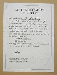 LOT 92 2 Serigraphs signed (Daphne) Odjig 79', 13 7/8" x 11 1/4", "Caring" & "Comforting", Ed.99. Estimate: $150 - $300 Sold For: $250 Auction Date: Tuesday, July 23 2024 at 4:00 PM