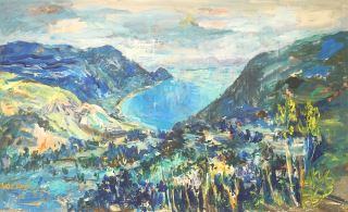 Oil on Canvas signed Hasan Djaafar 1919-95, 31 1/2" x 51 1/4", "Indonesian Landscape".