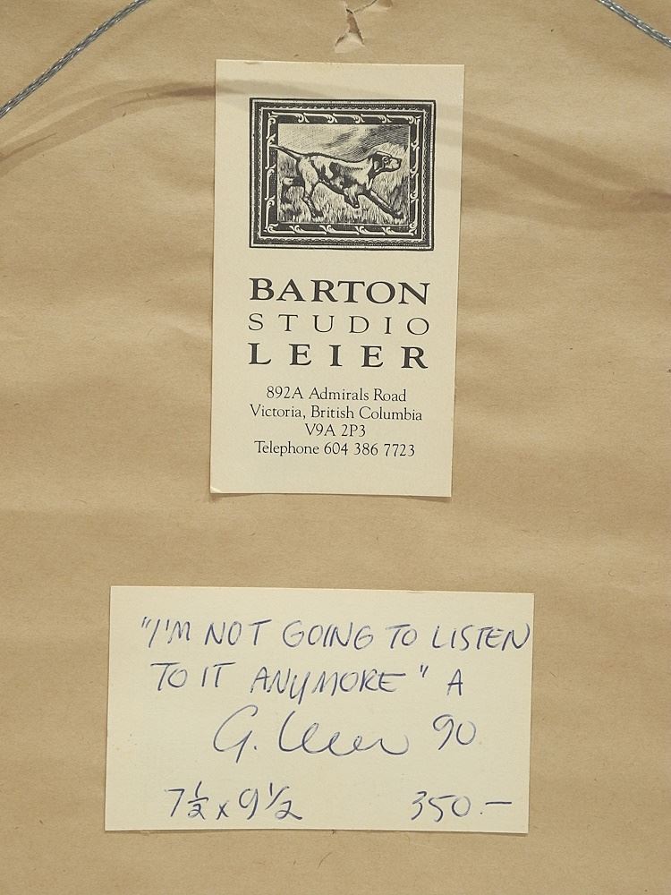 Mixed Media signed (Grant) Leier, 9 1/4" x 7 1/4", "I'm Not Going To Listen To It Anymore".
