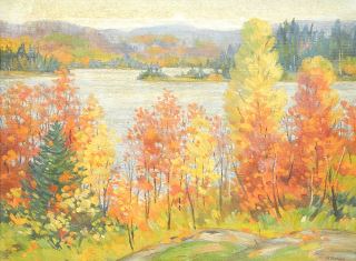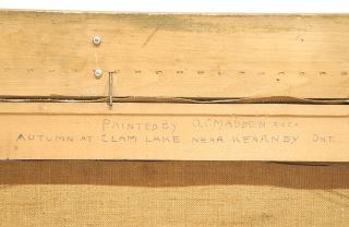 LOT 46 Oil on Canvas signed O.C. (Orval Clinton) Madden, 18" x 24", " Autumn at Clam Lake". Estimate: $150 - $250 Sold For: $150 Auction Date: Tuesday, December 17 2024 at 4:00 PM