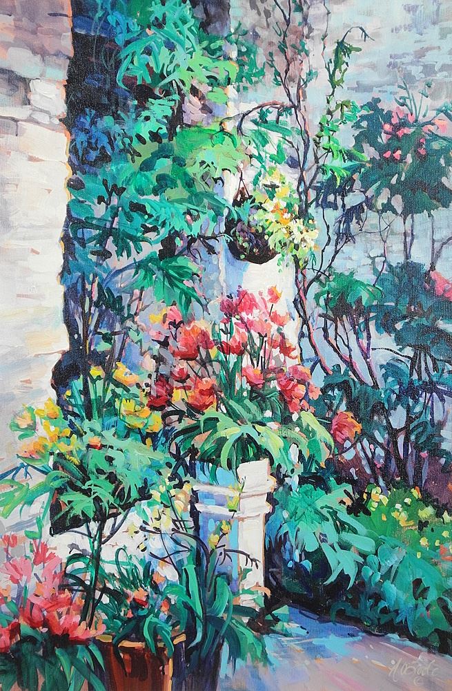 Acrylic on Canvas signed N (Nancy) O'Toole, 36" x 24", "Courtyard Corner".