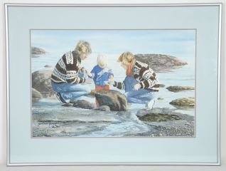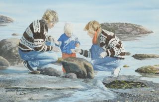 Watercolour signed Gordon Herschel 1990, 14 1/4" x 21 5/8", "Exploring Tide Pools".