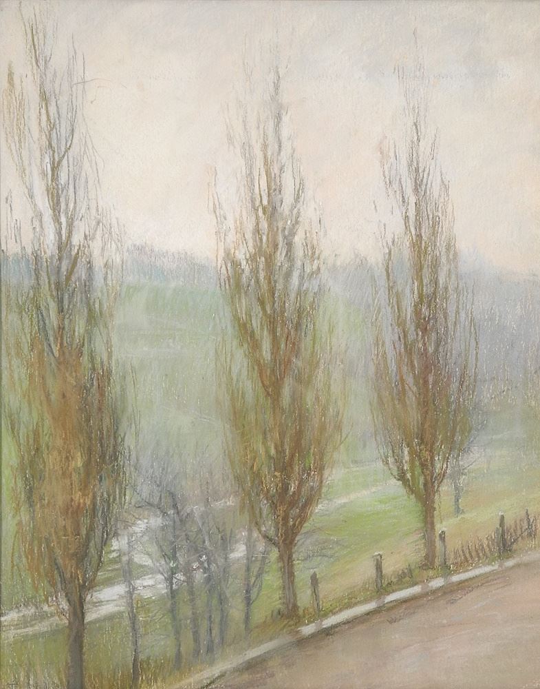 LOT 58 Oil Pastel signed .STS, 20 1/2" x 16 1/2", "Poplar Trees". Estimate: $100 - $150 Sold For: $130 Auction Date: Tuesday, December 17 2024 at 4:00 PM
