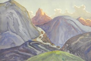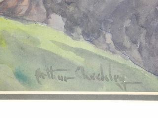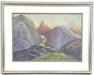 LOT 154 Watercolour signed Arthur Checkley, 10" x 14 3/8", "Mountains & Sunlight ". Estimate: $100 - $200 Sold For: $80 Auction Date: Tuesday, December 17 2024 at 4:00 PM