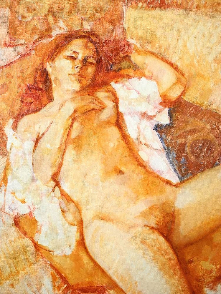 LOT 114 Oil on Linen signed (Anthony) Thorn, 30" x 30", "Reclining Figure of Robin with Shirt". Estimate: $300 - $500 Sold For: $150 Auction Date: Tuesday, December 17 2024 at 4:00 PM