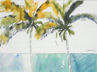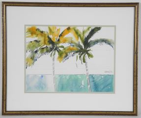 LOT 84 Sketch with Watercolour signed (Donald) Harvey'82, 8 3/4" x 11 3/4" , 'Palm Trees Horizon'. Estimate: $80 - $140 Sold For: $80 Auction Date: Tuesday, December 17 2024 at 4:00 PM
