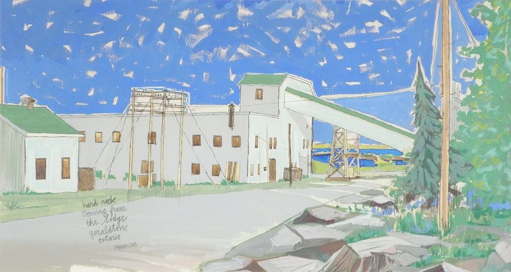 Gouache on Paper signed (Jack) Reppen'63, 14 1/2" x 27", "Hard Rock Coming...".