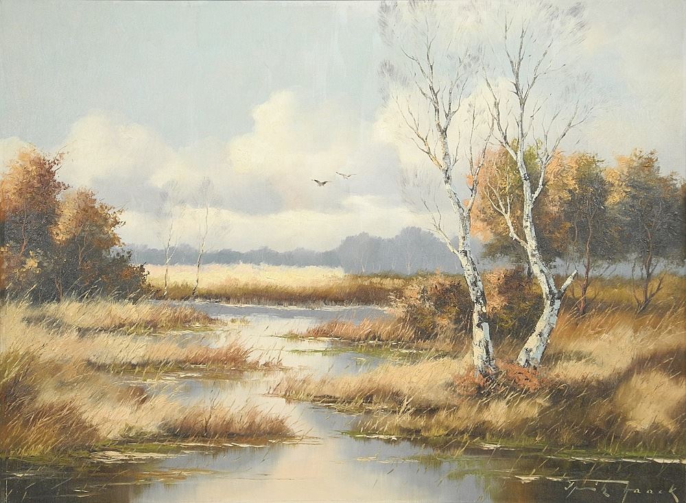 LOT 44 Oil on Canvas signed Fritz Haack, 24" x 32", "Woser-Ems-Landshaft". Estimate: $80 - $120 Sold For: $130 Auction Date: Tuesday, December 17 2024 at 4:00 PM