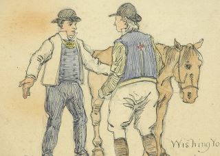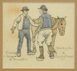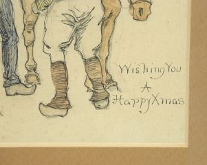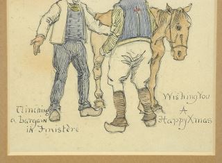 LOT 39 Ink & Colour Christmas Card Attributed to Robert Polhill Bevan, 4 1/8" x 4 1/2". Estimate: $300 - $500 Sold For: $300 Auction Date: Tuesday, December 17 2024 at 4:00 PM