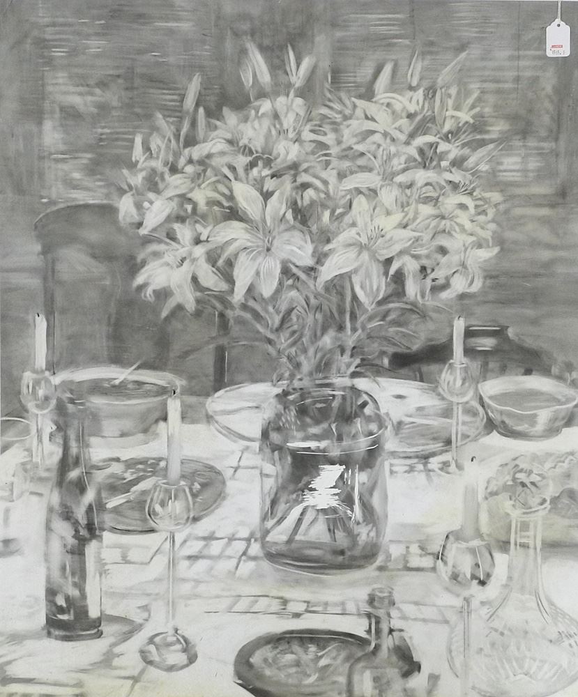 LOT 146 Unsigned Graphite on Polystyrene, 33" x 27 3/4", "Still Life with Flowers". Estimate: $50 - $60 Sold For: $30 Auction Date: Tuesday, December 17 2024 at 4:00 PM