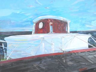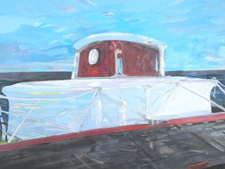 LOT 52 Unsigned Oil on Canvas, 29 3/4" x 39 1/2", "At the Dock". Estimate: $150 - $200 Sold For: $45 Auction Date: Tuesday, December 17 2024 at 4:00 PM