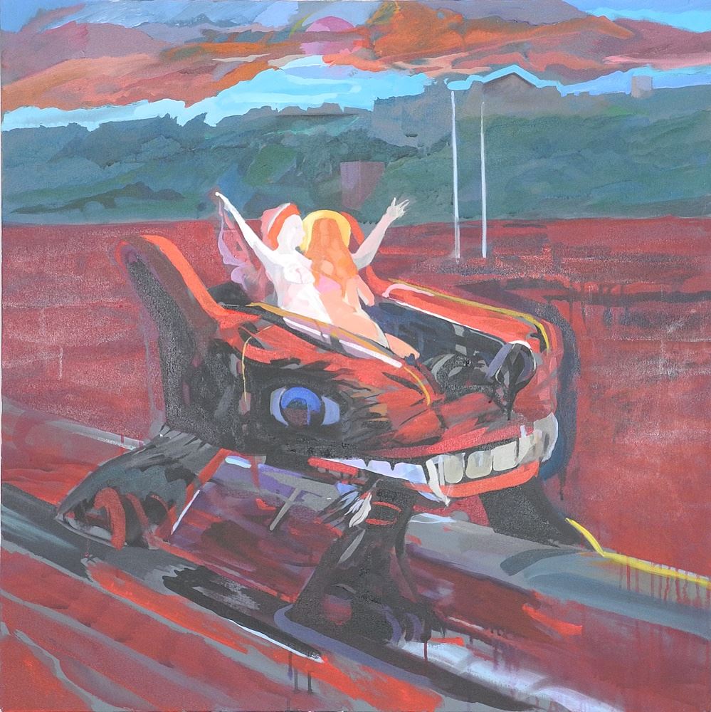 Unsigned Oil on Canvas, 36" x 36", "Two Girls on a Ride".