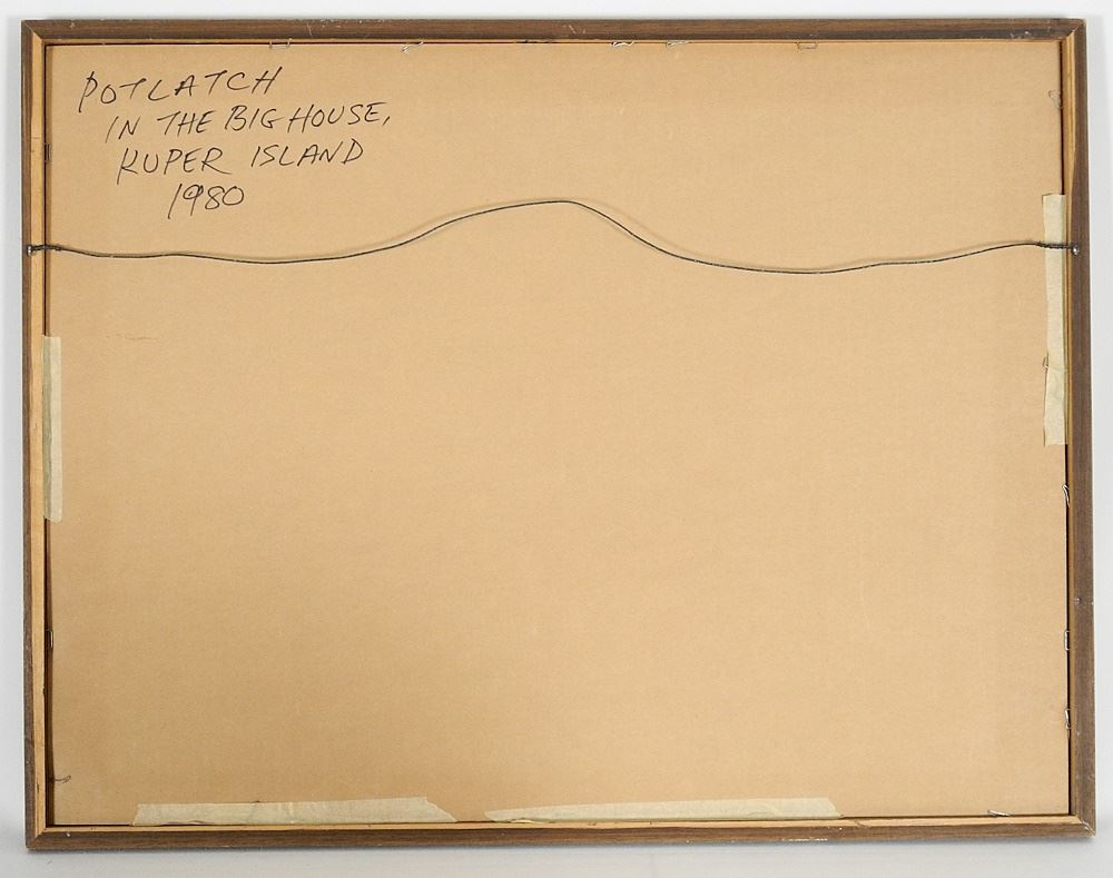 LOT 55 Watercolour signed Glenn E. Howarth, 14" x 20", "Potlatch in the Big House, Kuper Island 1980". Estimate: $100 - $200 Sold For: $80 Auction Date: Tuesday, December 17 2024 at 4:00 PM