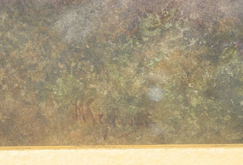 Watercolour signed M. S******, 15" 22", "Cow's Watering".