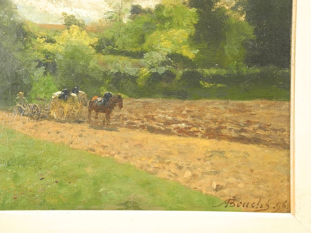 Oil on Canvas signed (Louis) A. (Alexandre) Bouche'92, 15" x 18", "Plowing Scene".