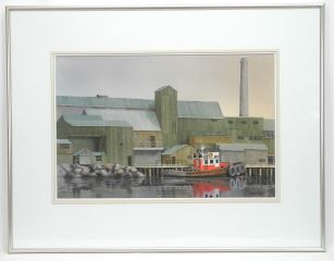 LOT 44 Watercolour signed (Alan) Lester, 13 1/2 x 20 1/2", "Tugboat". Estimate: $100 - $150 Sold For: $225 Auction Date: Tuesday, June 24 2025 at 4:00 PM