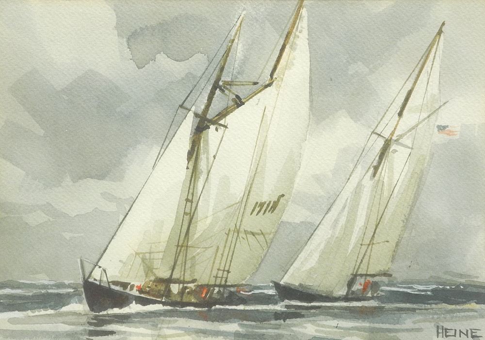 LOT 5 Watercolour signed (Harry) Heine, 6 x 8", "Sailboats". Estimate: $80 - $120 Sold For: $80 Auction Date: Tuesday, June 24 2025 at 4:00 PM