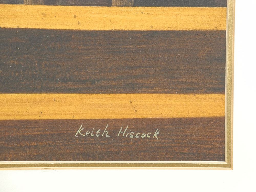Watercolour signed Keith Hiscock, 10 1/2 x 20 7/8", "Still Life with Blue & White Teapot".