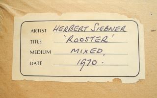 LOT 130 Mixed Media signed H. (Herbert) Siebner, 13 1/2 x 10 3/4", "Rooster" 1970. Estimate: $150 - $300 Sold For: $200 Auction Date: Tuesday, June 24 2025 at 4:00 PM