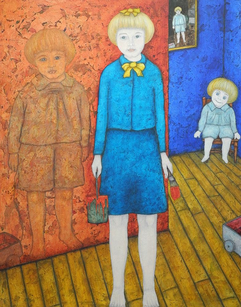 LOT 9 Oil on Canvas Mounted on Board signed (Duncan) Regehr, 48 x 40", "The Older Sister", 1999. Estimate: $400 - $600 Sold For: $1,300 Auction Date: Tuesday, June 24 2025 at 4:00 PM