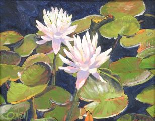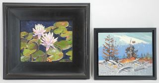 Two Oil on Board signed (Rob) Owen, Larger 8 x 10", "Water Lilies" & "Whiffin Beach".