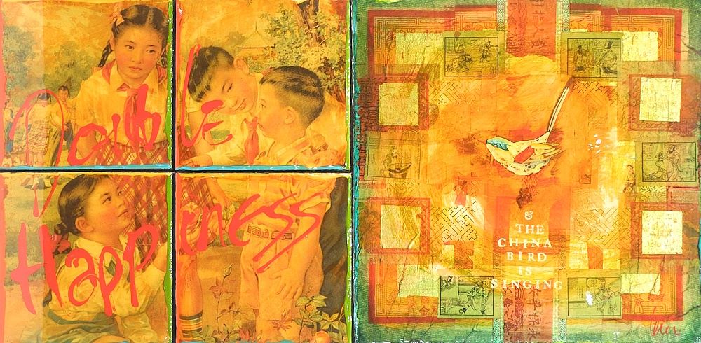 LOT 50 Mixed Media Collage on Canvas signed (Grant) Leier, 24 x 48", "Double Happiness". Estimate: $600 - $1,000 Sold For: $350 Auction Date: Tuesday, June 24 2025 at 4:00 PM