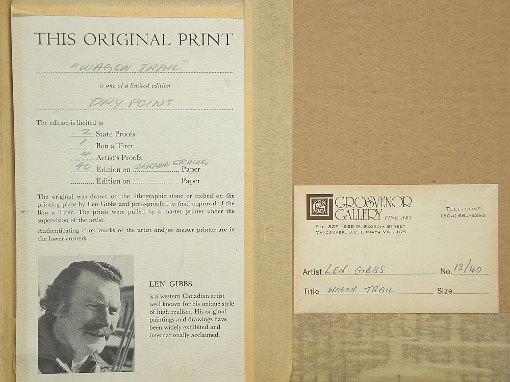 Coloured Drypoint signed L. (Len) Gibbs, Plate 5 3/4 x 5 3/4", "Wagon Trail" #12/40.