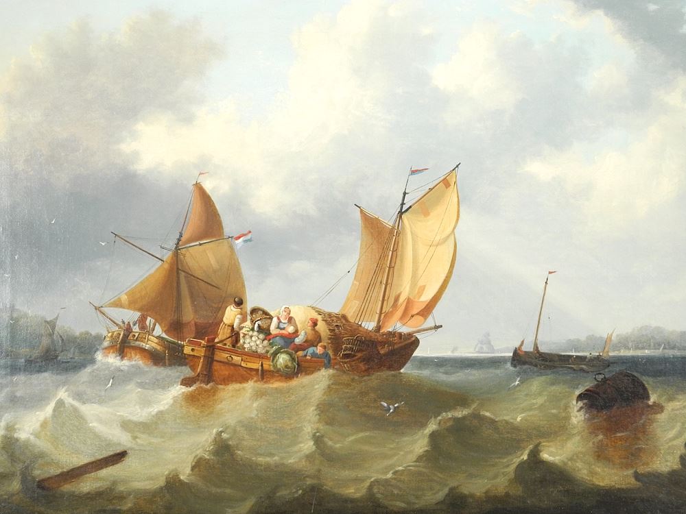 LOT 102 Oil on Canvas signed F.W. Roberts 1826, 23 5/8 x 36", "Dutch Cargo Ships". Estimate: $750 - $1,200 Auction Date: Tuesday, June 24 2025 at 4:00 PM