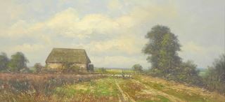 LOT 81 Oil on Canvas signed H. Reuter, 16 x 31 1/2", "Landscape with Sheep Farmer". Estimate: $100 - $200 Sold For: $80 Auction Date: Tuesday, June 24 2025 at 4:00 PM