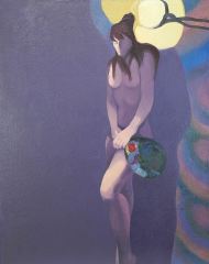 Oil on Canvas signed Indistinctly, 47 1/4 x 37 1/4", "Woman- Nude".