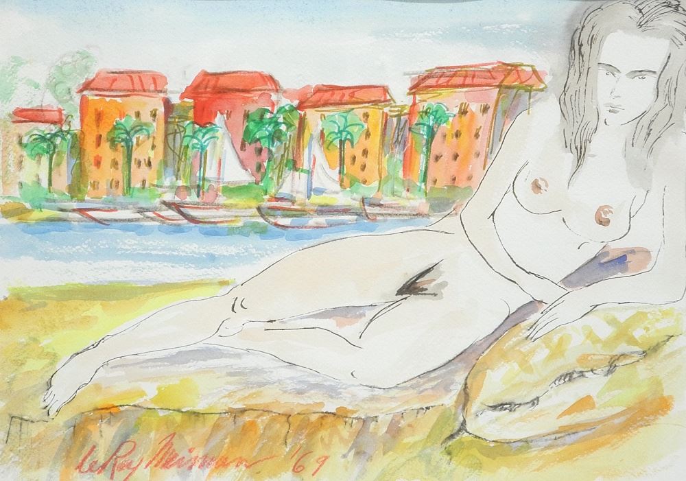 LOT 120 Watercolour signed Leroy Neiman'69, 9 1/2 x 13 1/2", "Reclining Nude on Coast". Estimate: $300 - $600 Auction Date: Tuesday, August 26 2025 at 4:00 PM