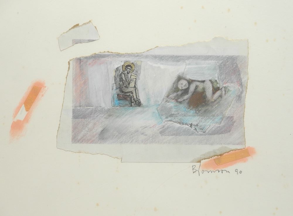 LOT 78 Mixed Media Collage on Paper signed (Michael) Bjornson'90, 14 1/2 x 20", "Infancy to Eternity". Estimate: $80 - $120 Auction Date: Tuesday, August 26 2025 at 4:00 PM