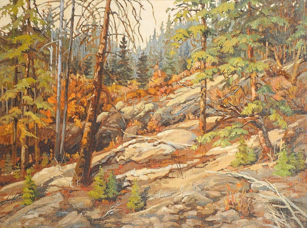 Oil on Canvas Mounted to Board signed Frances Harris, 30 x 40", "Autumnal Mountain Scene".