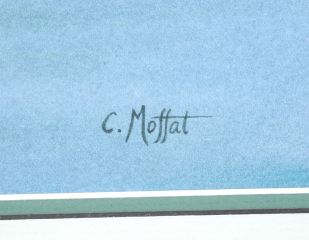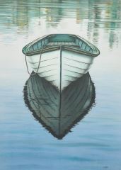 Mixed Media on Paper signed C. (Catherine) Moffat, 25 3/4 x 18 3/4" , "Row Boat on the Lake".