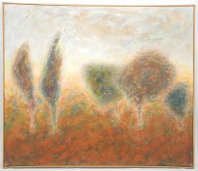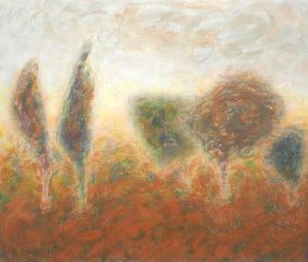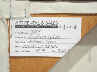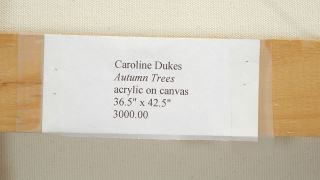 Acrylic on Canvas signed C. (Caroline) Dukes'01, 36 3/4" x 42 3/4", "Autumn Trees".