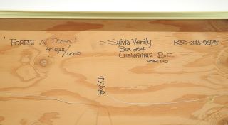 Acrylic on Wood Monogrammed SMCV (Sylvia Verity), 24 x 24", "Forest at Dusk".