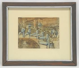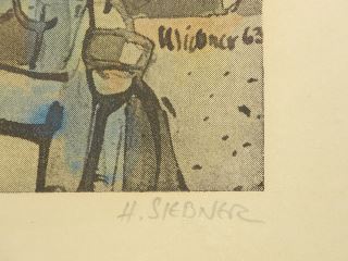 Hand Coloured Print signed H. (Herbert) Siebner, 5 1/2 x 7 1/4", "Dancing Men, Istanbul".