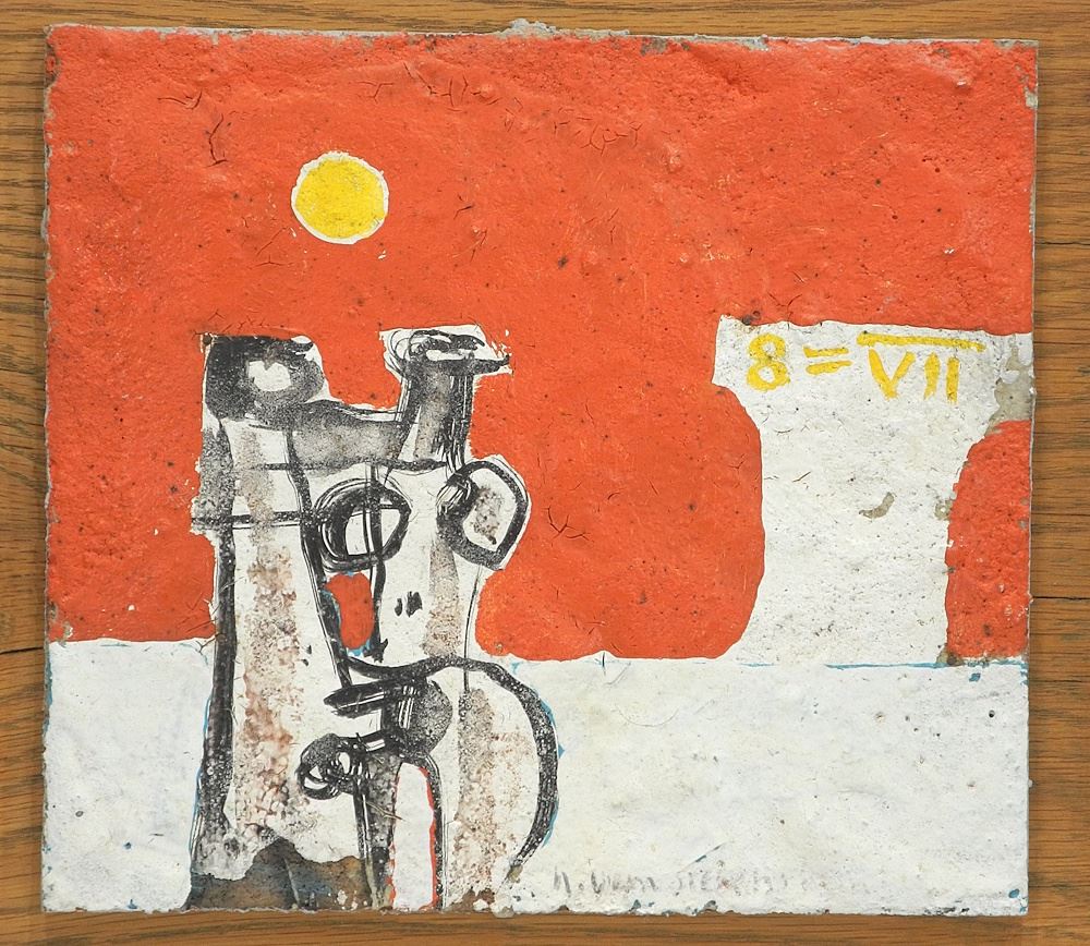 LOT 127 Mixed Media Graffito Panel signed H. (Herbert) Siebner, 7 1/4 x 8 1/8" , "Ancient Lovers" 1977. Estimate: $1,500 - $2,000 Auction Date: Tuesday, August 26 2025 at 4:00 PM